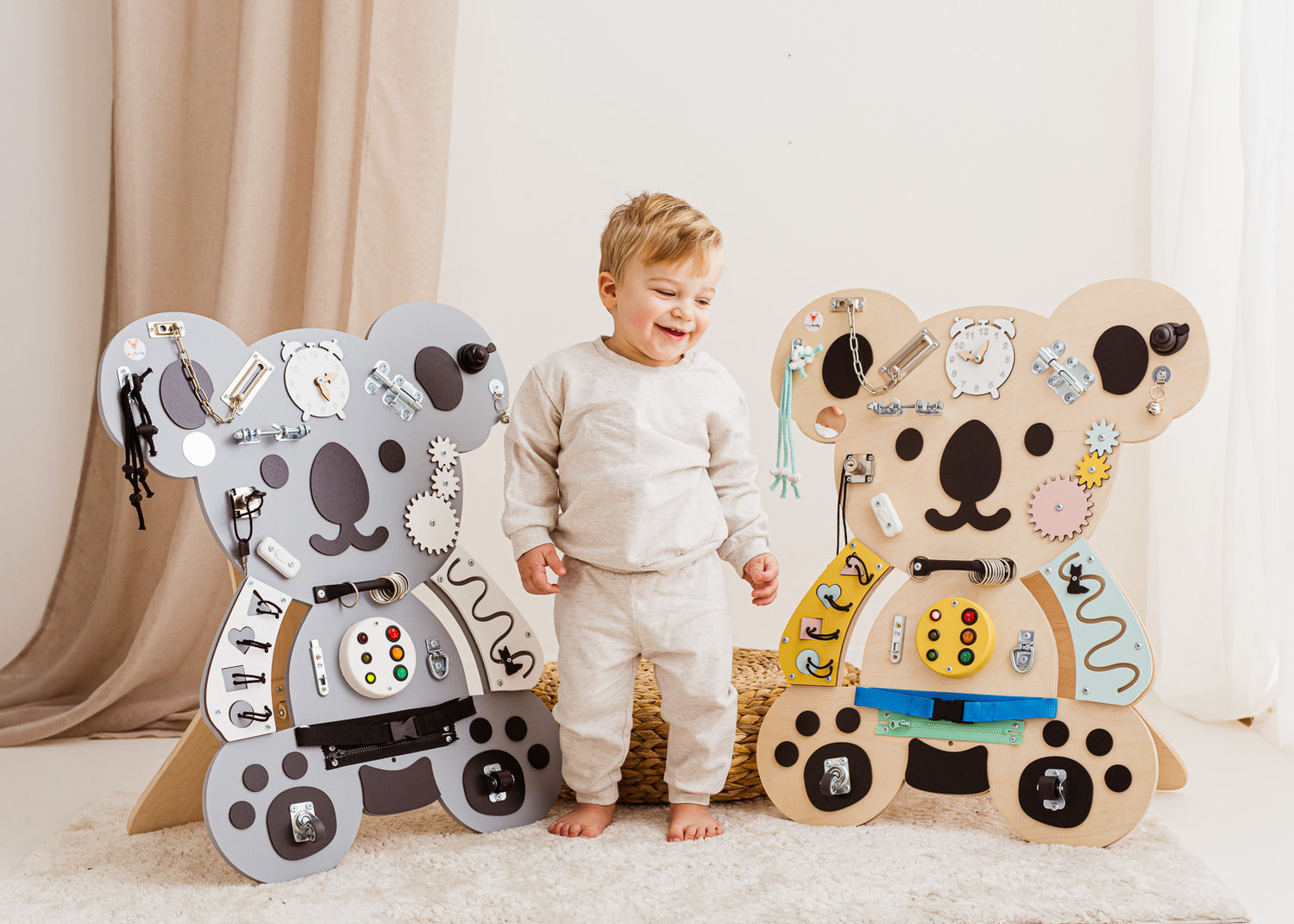 Ein Motorikbrett fördert ganz nebenbei Feinmotorik, Konzentration und logisches Denken. Durch Drehen, Öffnen und Sortieren entdeckt dein Kind Zusammenhänge – selbstständig, im eigenen Tempo und mit jeder Menge Stolz auf das, was es schon kann.