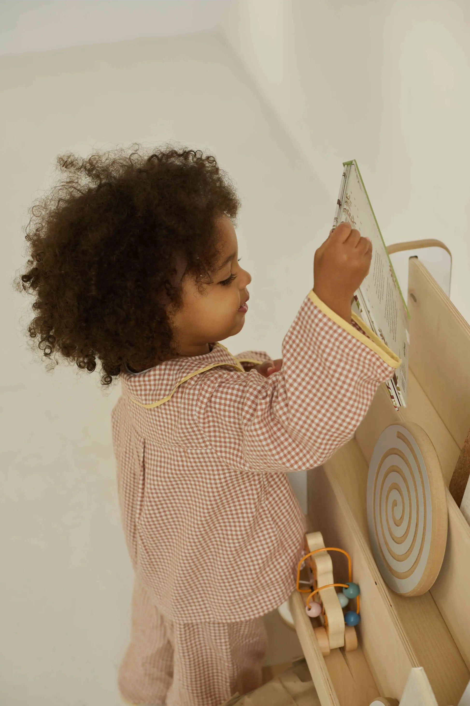 Dieses Kinderbuchregal aus Holz ist eine Kombination aus einfachen Formen und außergewöhnlicher Funktionalität. Auf den Holzböden und in den zusätzlichen Spielzeugkisten lassen sich Bücher, Lieblingsteddys, Puppen und sogar Bauklötze oder Brettspiele problemlos unterbringen. Schluss mit dem Durcheinander im Kinderzimmer - Dein Kind kann seine Spielsachen selbständig sortieren und nach dem Spielen wieder an ihren Platz stellen.