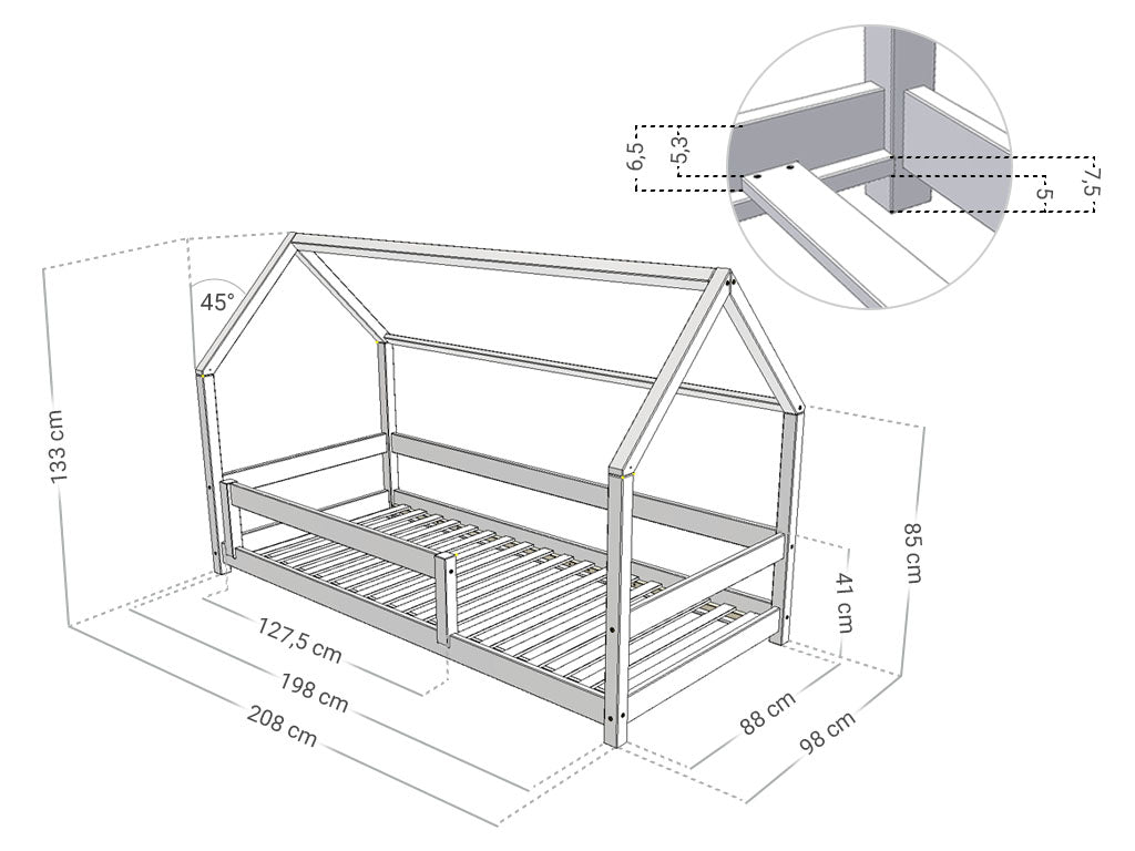 Hausbett FENNA für Kinder mit Rausfallschutz, versch. Maße & Farben