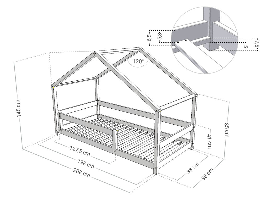 Gefertigt aus hochwertigem Fichtenholz und mit viel Liebe zum Detail entsteht ein langlebiger Begleiter, der Spiel, Ruhe und Fantasie vereint. Das charakteristische Dach macht NIKA zum Haus im Zimmer, der Lattenrost sorgt für angenehmen Schlafkomfort.