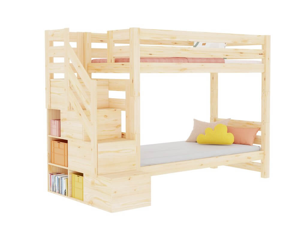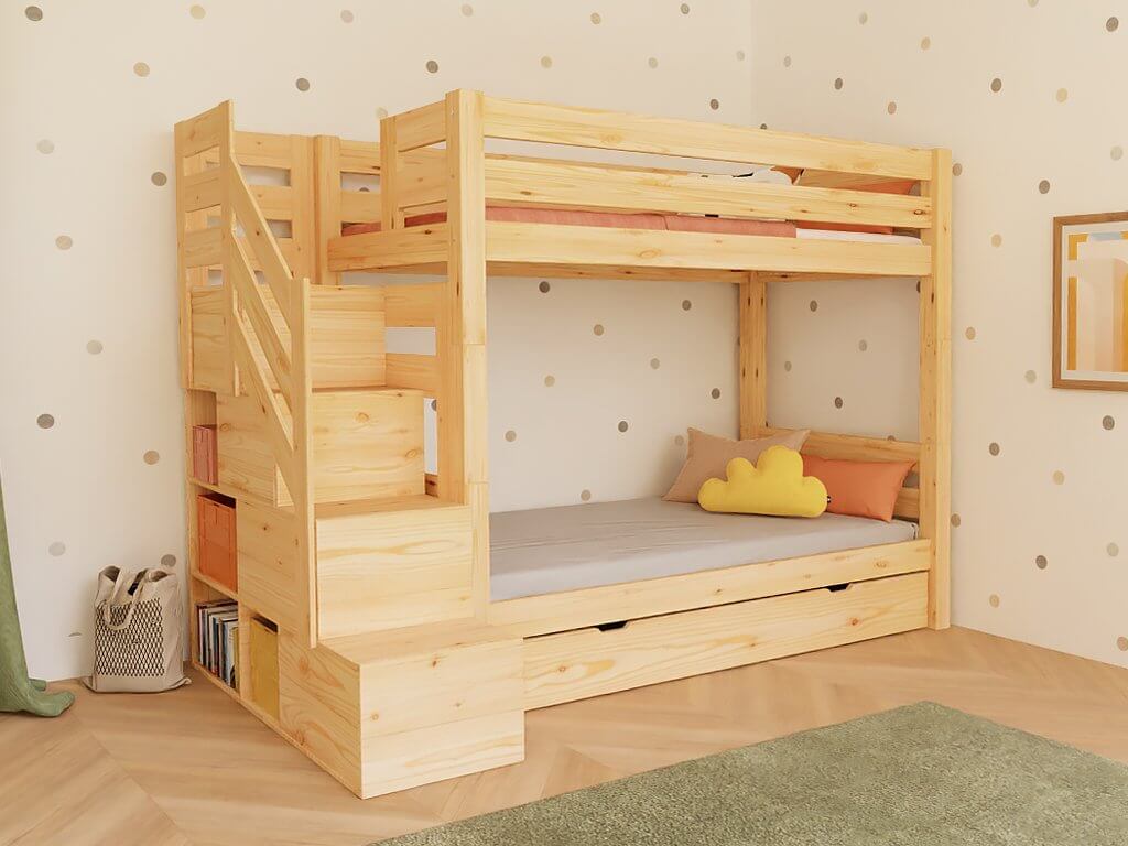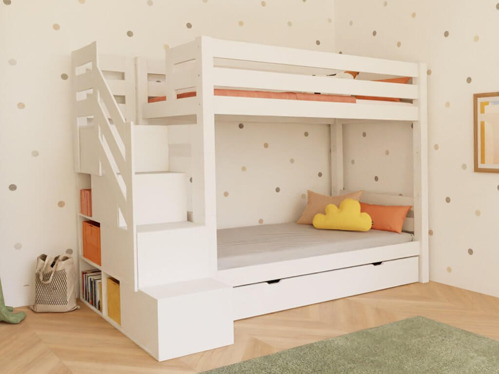 Etagenbett THEA mit praktischem Regal als Leiter – Platzsparende Schlaflösung für Kinder