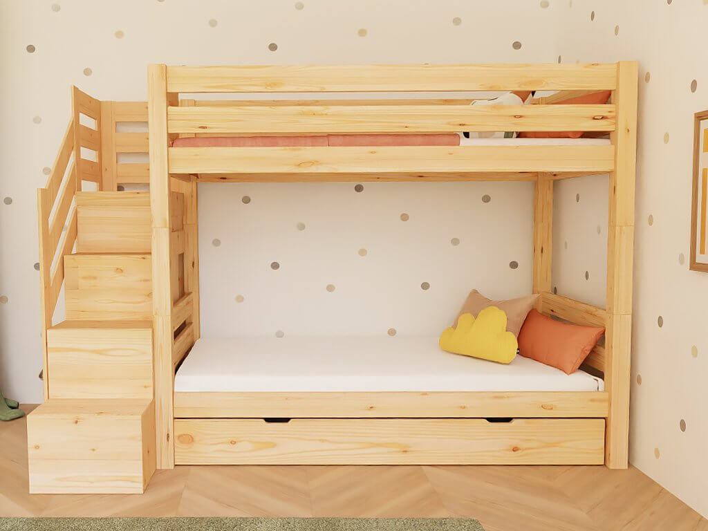 Das Etagenbett THEA bietet eine durchdachte und platzsparende Schlaflösung für Kinderzimmer. Gefertigt aus massivem Kiefernholz, überzeugt es durch Stabilität und Langlebigkeit.
