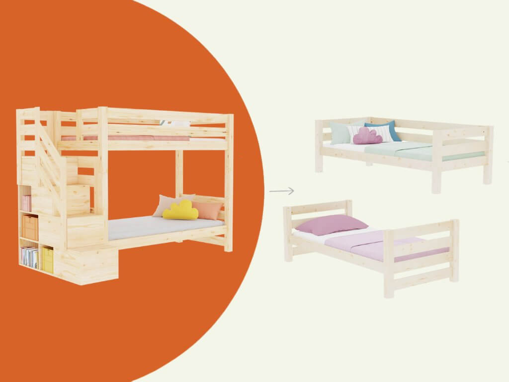 Ein besonderes Merkmal des THEA-Bettes ist die Möglichkeit, es in zwei separate Einzelbetten zu verwandeln. Dies bietet Flexibilität bei der Raumgestaltung und passt sich den wechselnden Bedürfnissen deiner Familie an.