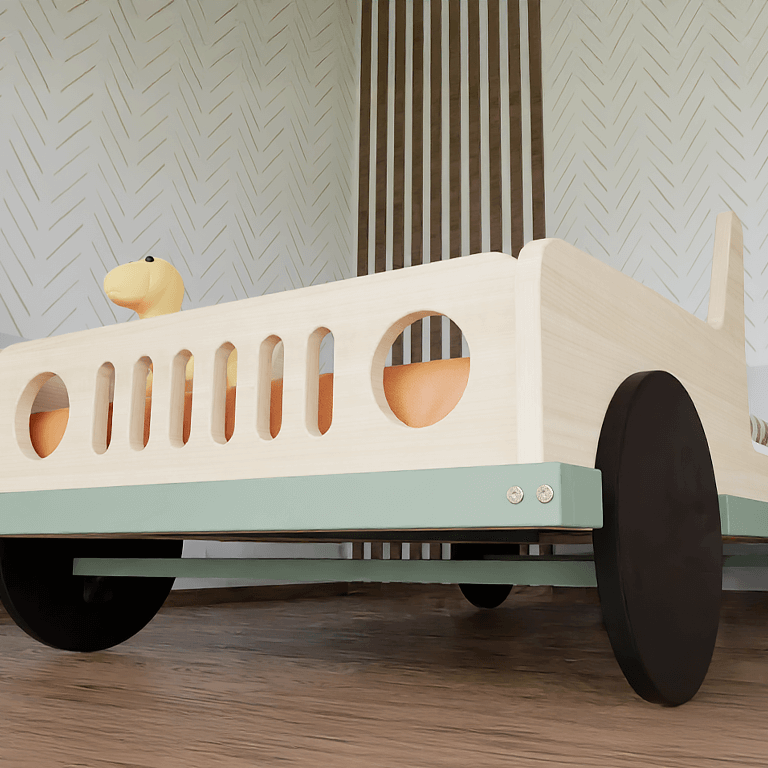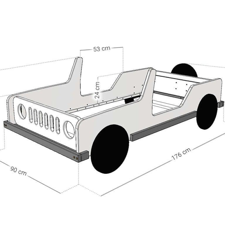 Das detailreiche Jeep-Design regt die Fantasie deines Kindes an und lädt zu spannenden Rollenspielen ein. Abgerundete Kanten und eine sorgfältige Verarbeitung gewährleisten höchste Sicherheit. Zudem ist das Bett einfach zu montieren und fügt sich harmonisch in jedes Kinderzimmer ein.​