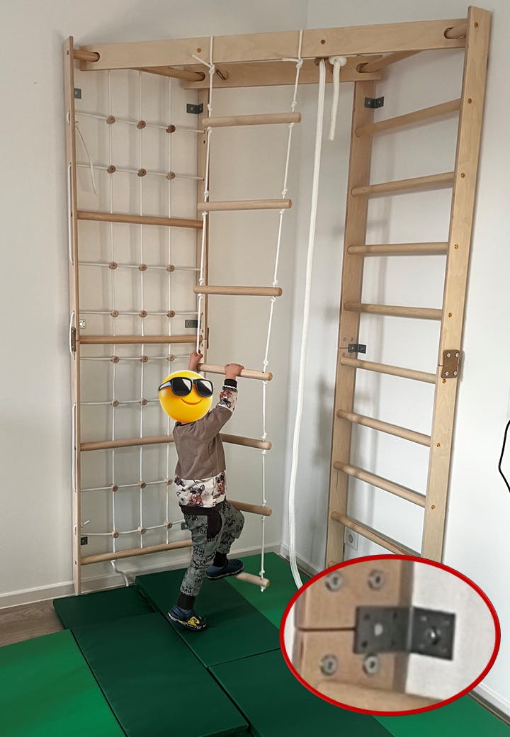 Hinweis: Dieses Produkt ist speziell für körperliche Aktivität entwickelt und kein Spielzeug im Sinne der Richtlinie 2009/48/EG. Das Gerät erfüllt die Anforderungen der europäischen Norm EN 913 für Sportgeräte im privaten Bereich. Jede Komponente wurde statisch geprüft und auf sichere Belastbarkeit getestet. Eine Wandbefestigung wird ausdrücklich empfohlen.
