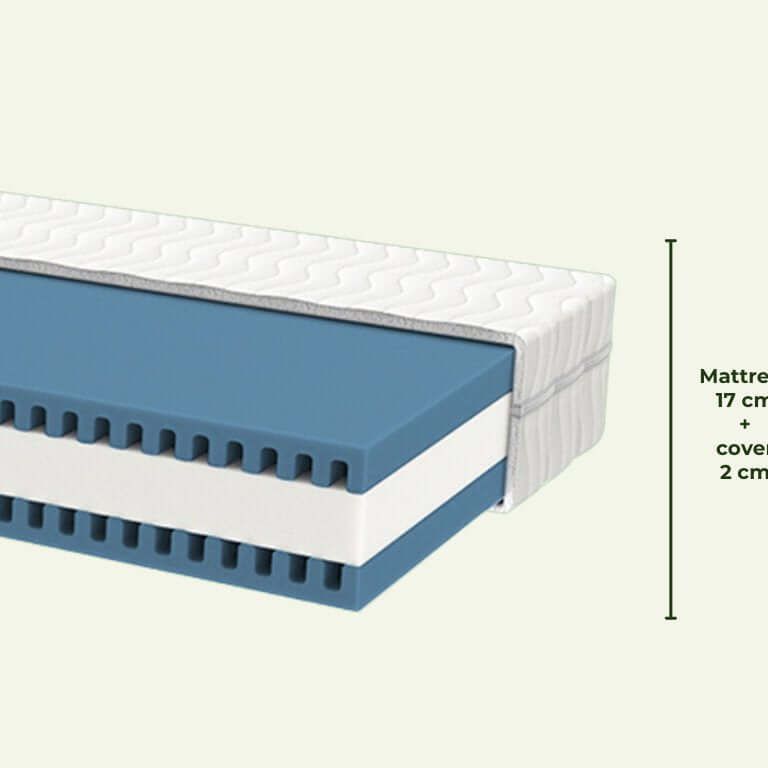 Die Kinderschaumstoffmatratze METROPOLIS wurde speziell entwickelt, um Kindern einen erholsamen Schlaf mit optimaler Rückenunterstützung zu bieten. Dank ihres durchdachten Aufbaus und hochwertiger Materialien fördert sie eine gesunde Schlafhaltung und passt sich den individuellen Bedürfnissen deines Kindes an.