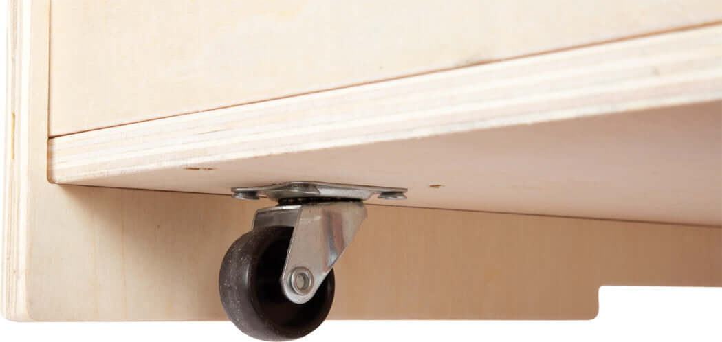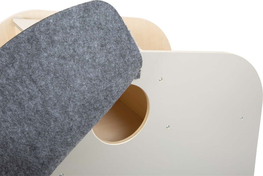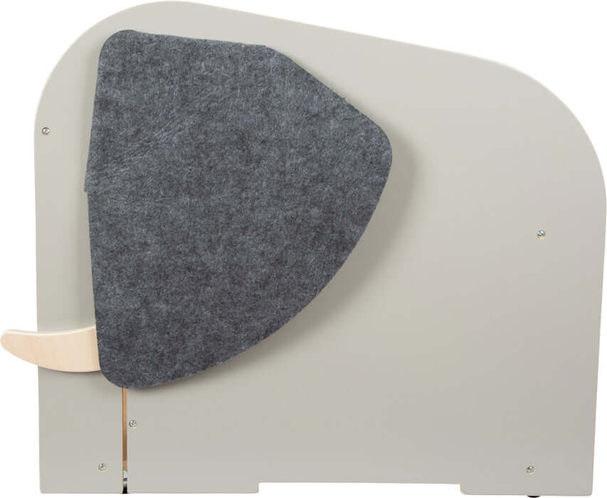 Mit seinen dezenten Farben, den großen Filzohren und seinem hohen sichtbaren Holzanteil fügt sich der Elefant dezent in jedes Wohnambiente ein. Dank verdeckten 360° Rollen lässt sich die Spielzeugbox mühelos in jede Richtung schieben und ziehen.