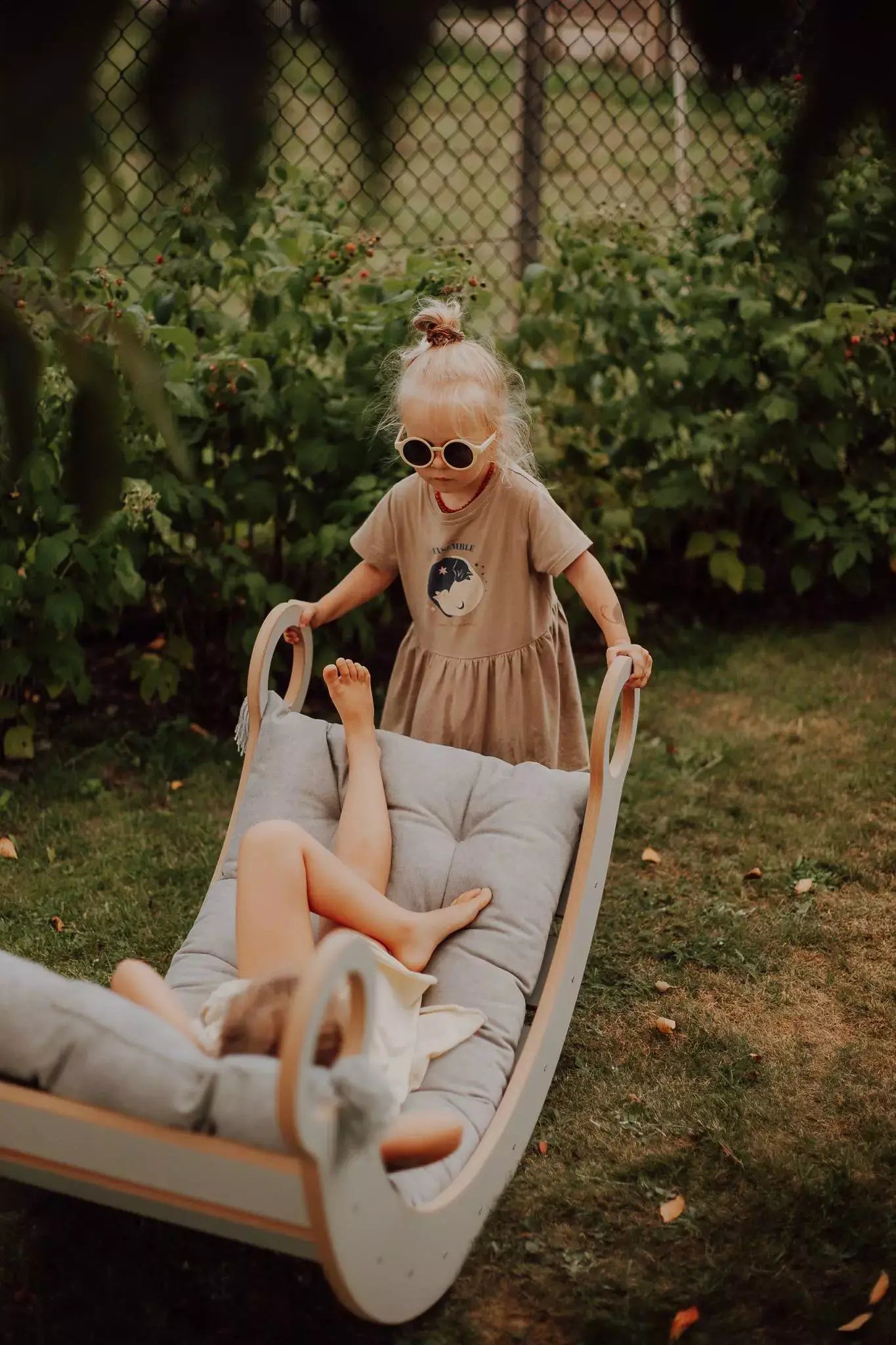 Der Besitz einer Wippe ist jedoch keine Voraussetzung. Das Kissen findet noch viele weitere Verwendungsmöglichkeiten in deinem Zuhause! Es eignet sich perfekt für die Leseecke oder als Unterlage für eine Liege.