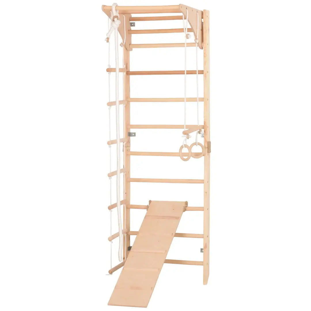 Hinweis: Dieses Produkt ist speziell für körperliche Aktivität entwickelt und kein Spielzeug im Sinne der Richtlinie 2009/48/EG. Das Gerät erfüllt die Anforderungen der europäischen Norm EN 913 für Sportgeräte im privaten Bereich. Jede Komponente wurde statisch geprüft und auf sichere Belastbarkeit getestet. Eine Wandbefestigung wird ausdrücklich empfohlen.