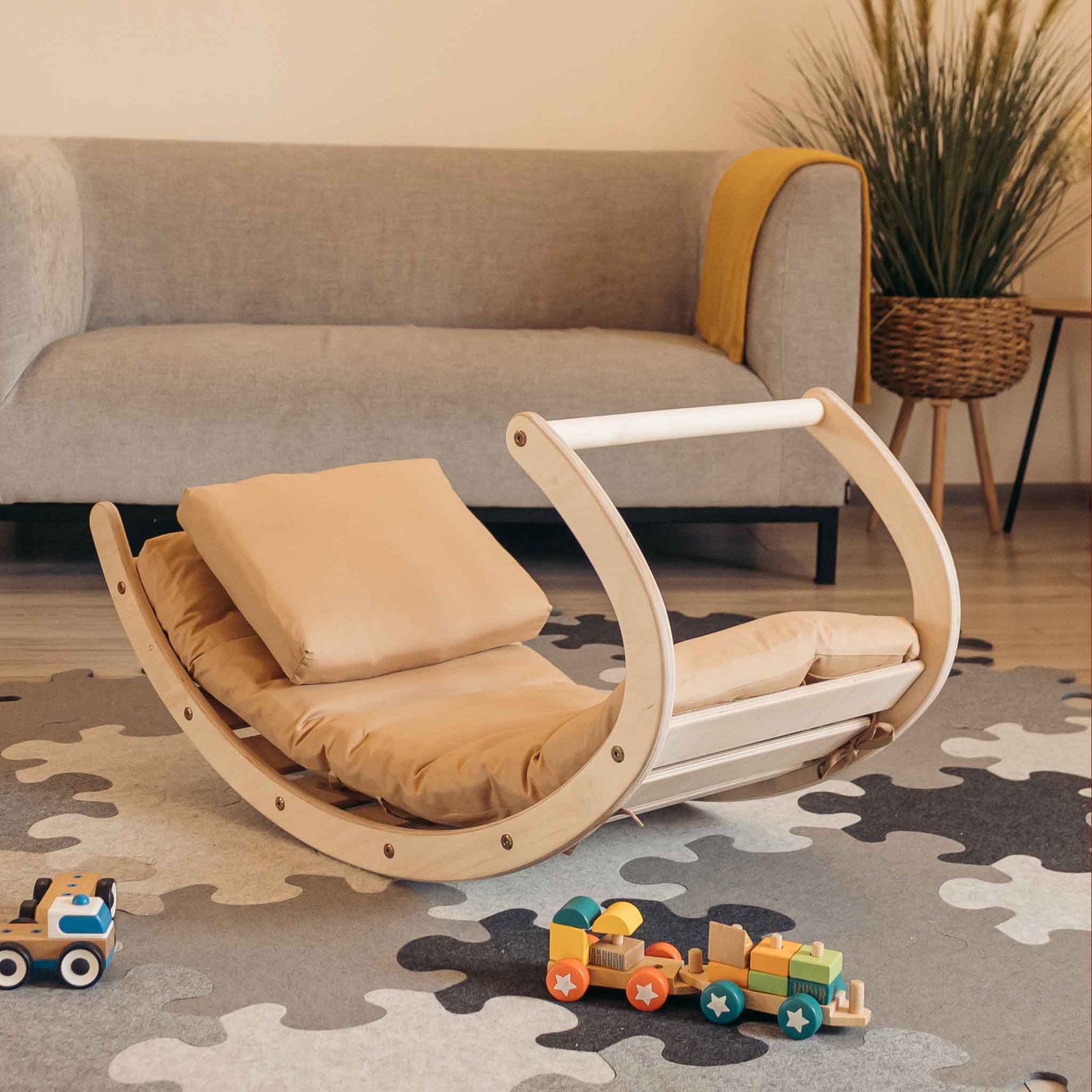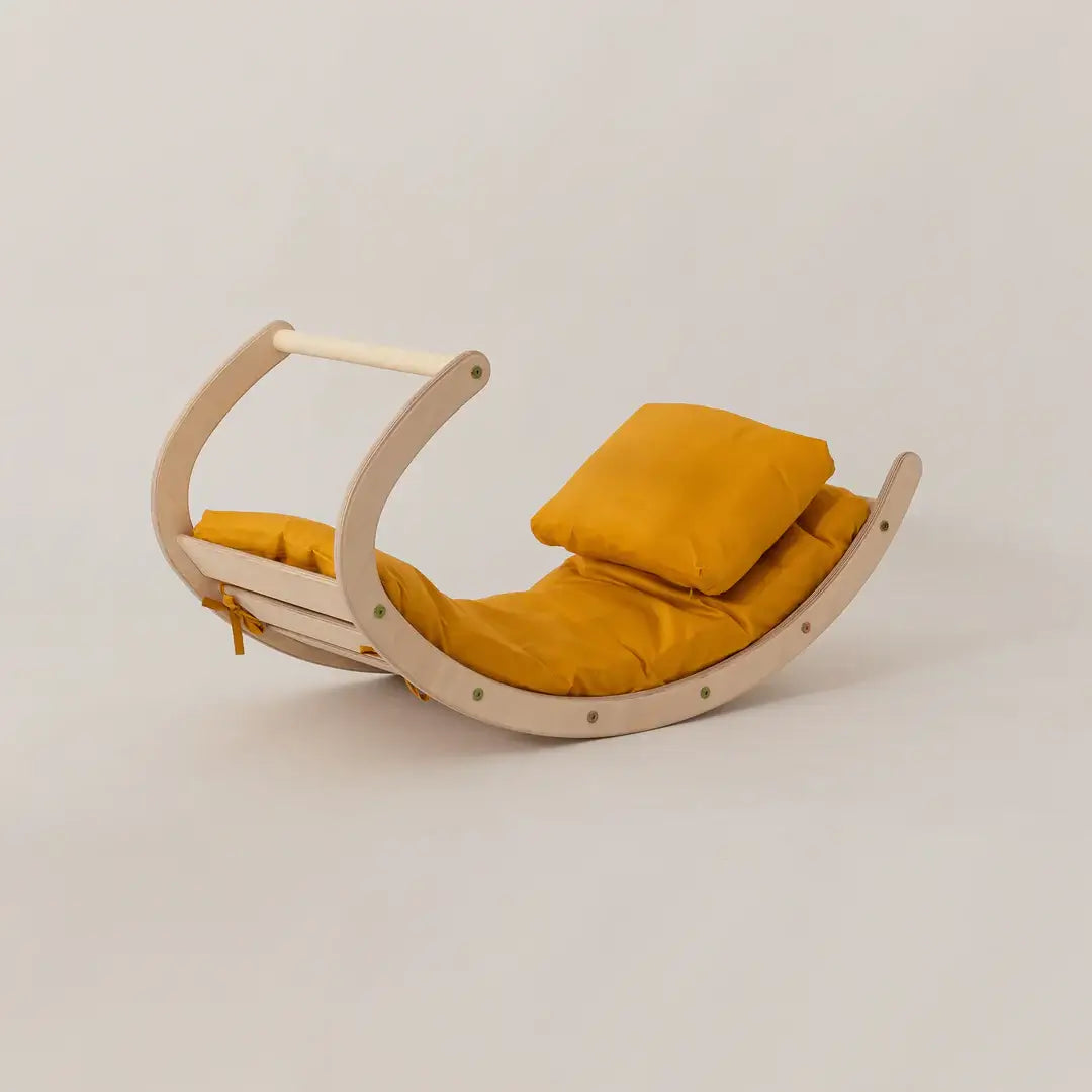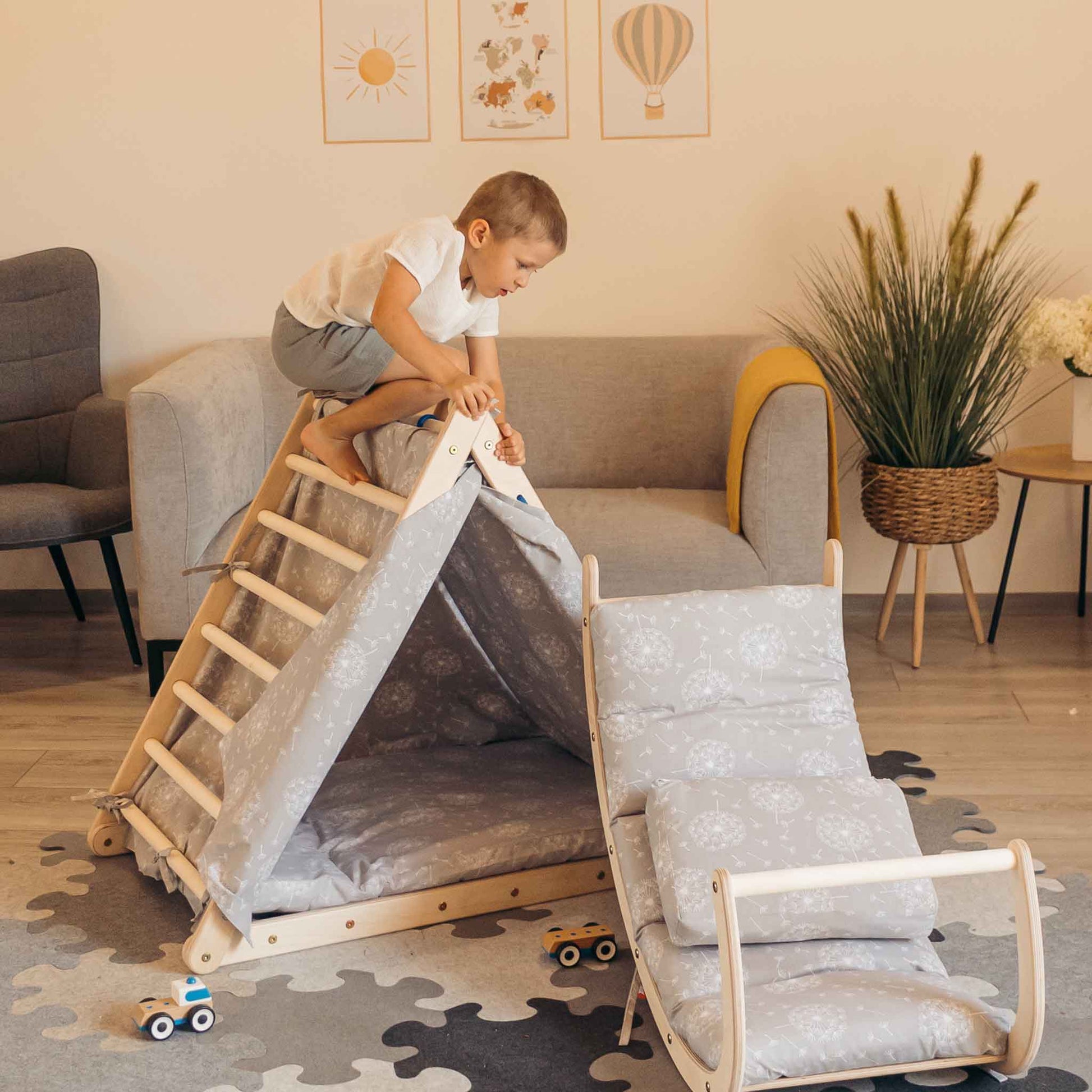 Diese Matratze mit aufgesetztem Kopfkissen ist eine perfekte Ergänzung speziell zu unserem Kletterbogen "Äffchen", kann aber auch separat verwendet werden. Sie kann sowohl zum Spielen als auch zum Schlafen und Nickerchen verwendet werden. Einfach die Matratze in das Kletterdreieck einlegen es ist fertig zum Bespielen.