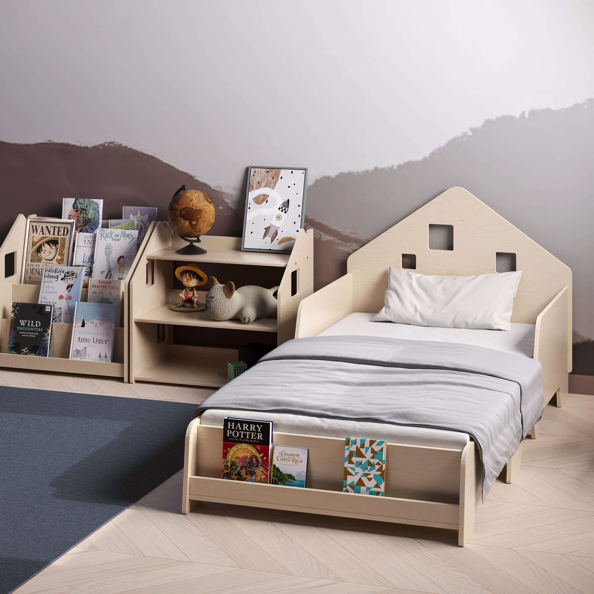 Unser Montessori Kinderbett in Form eines Hauses mit eingebauter mehrfarbiger LED-Beleuchtung wird nicht nur ein Schlafplatz, sondern auch eine echte magische und gemütliche Ecke für dein Kind werden.