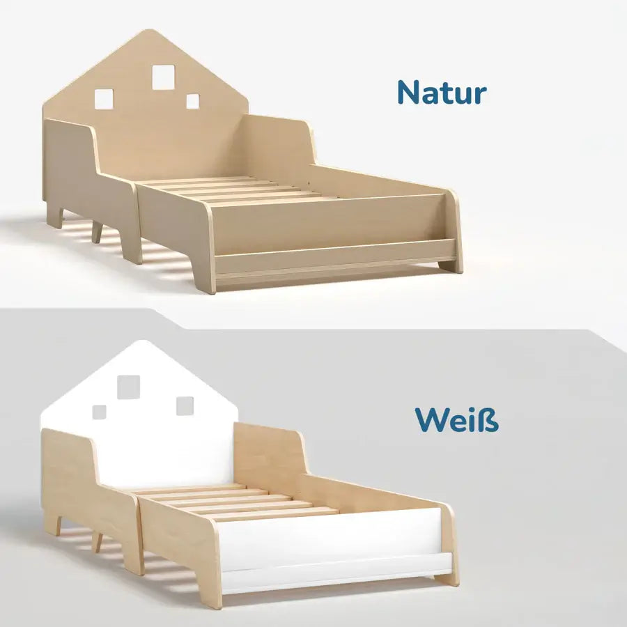 Eine einzigartige Eigenschaft des Bettes ist die Möglichkeit, die Länge des Bettes zu verstellen. Das bedeutet, dass das Bett mit deinem Baby "mitwächst" und ihm in jeder Phase seiner Entwicklung Komfort und Bequemlichkeit bietet.