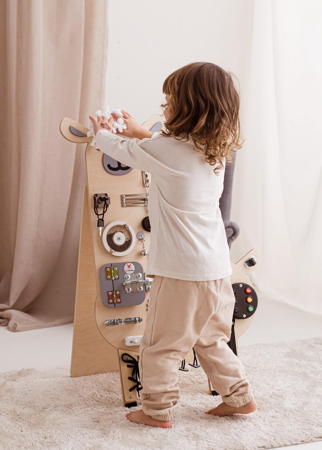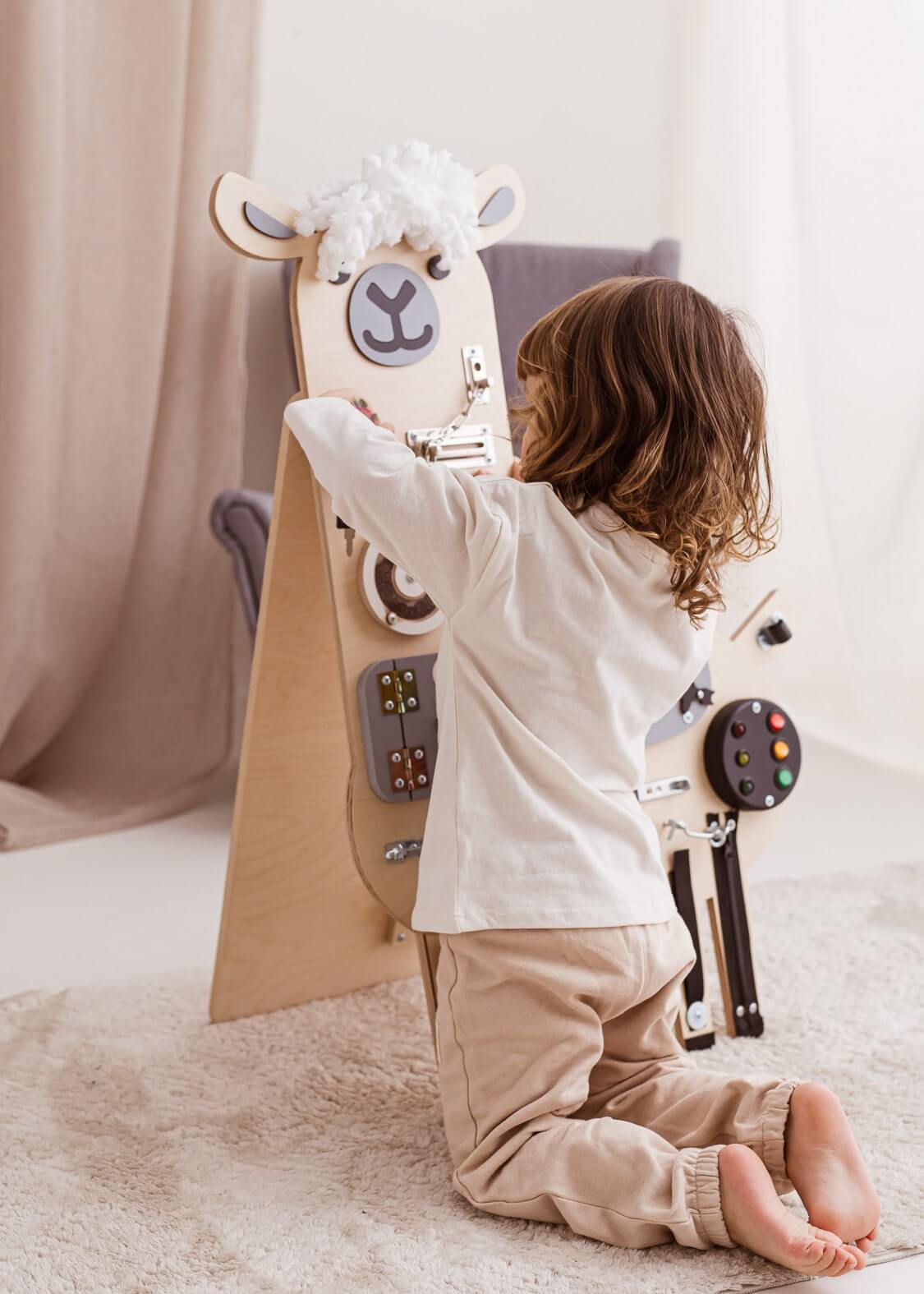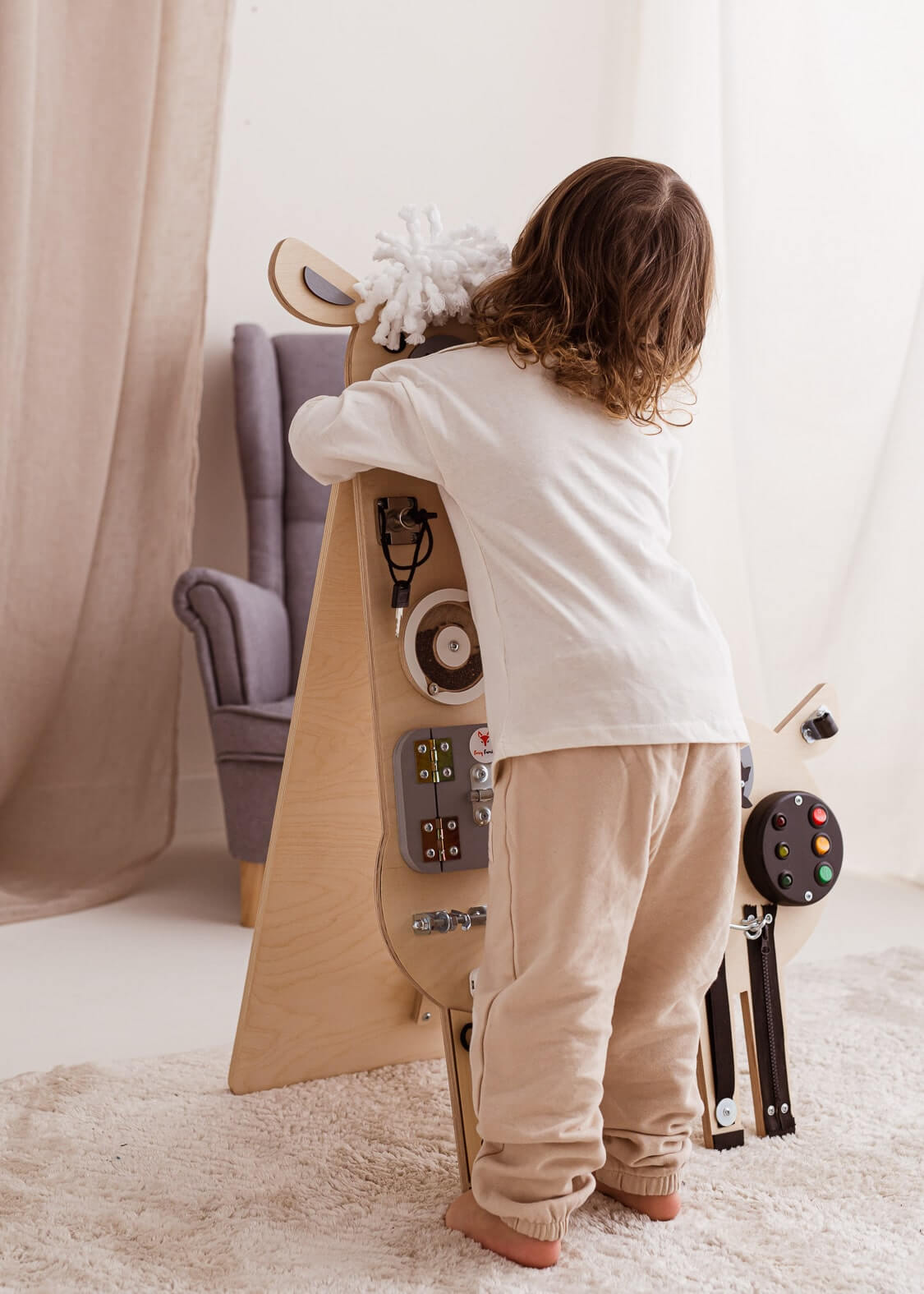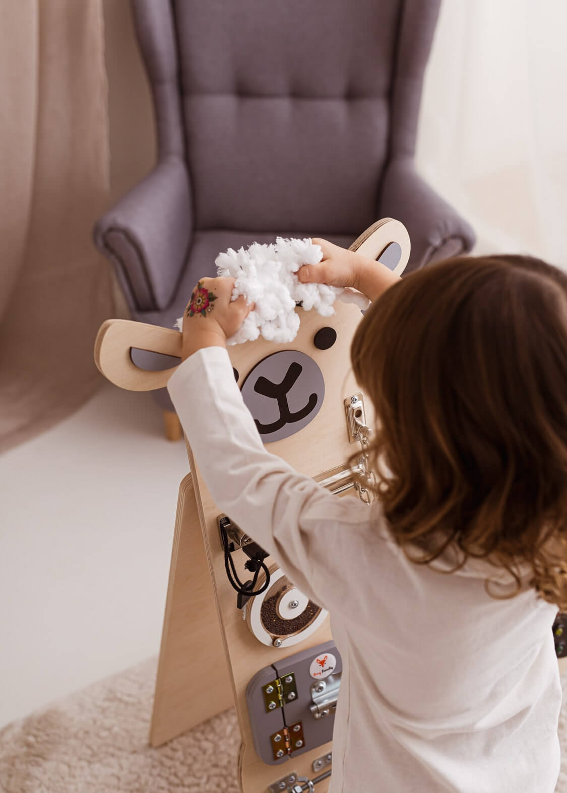 Mit viel Geduld, einem weichen Herzen und jeder Menge spannender Elemente hilft Lui dabei, Emotionen zu kanalisieren, Frust abzubauen und sich wieder zu sammeln. Dieses Motorikboard ist wie ein sicherer Anker im Gefühlschaos – liebevoll, ruhig und voller Möglichkeiten zum Ausprobieren.