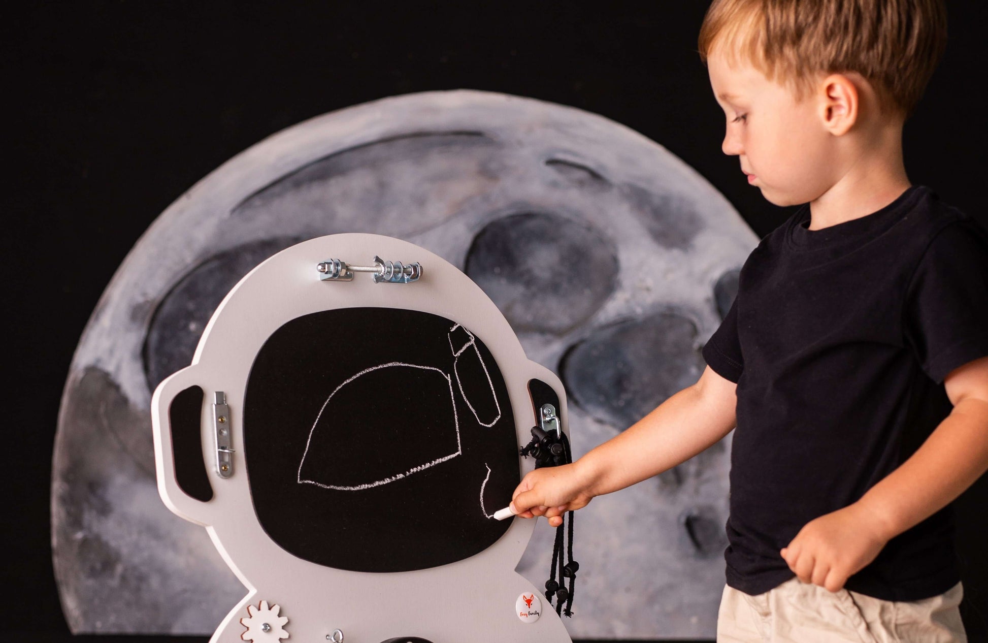 Susi Space ist ein echtes Entdecker-Board. Es verbindet Technik, Bewegung und Vorstellungskraft und fördert ganz nebenbei Selbstständigkeit, Feinmotorik und Konzentration. Ein Motorikboard für Kinder, die hoch hinaus wollen – Schritt für Schritt.
