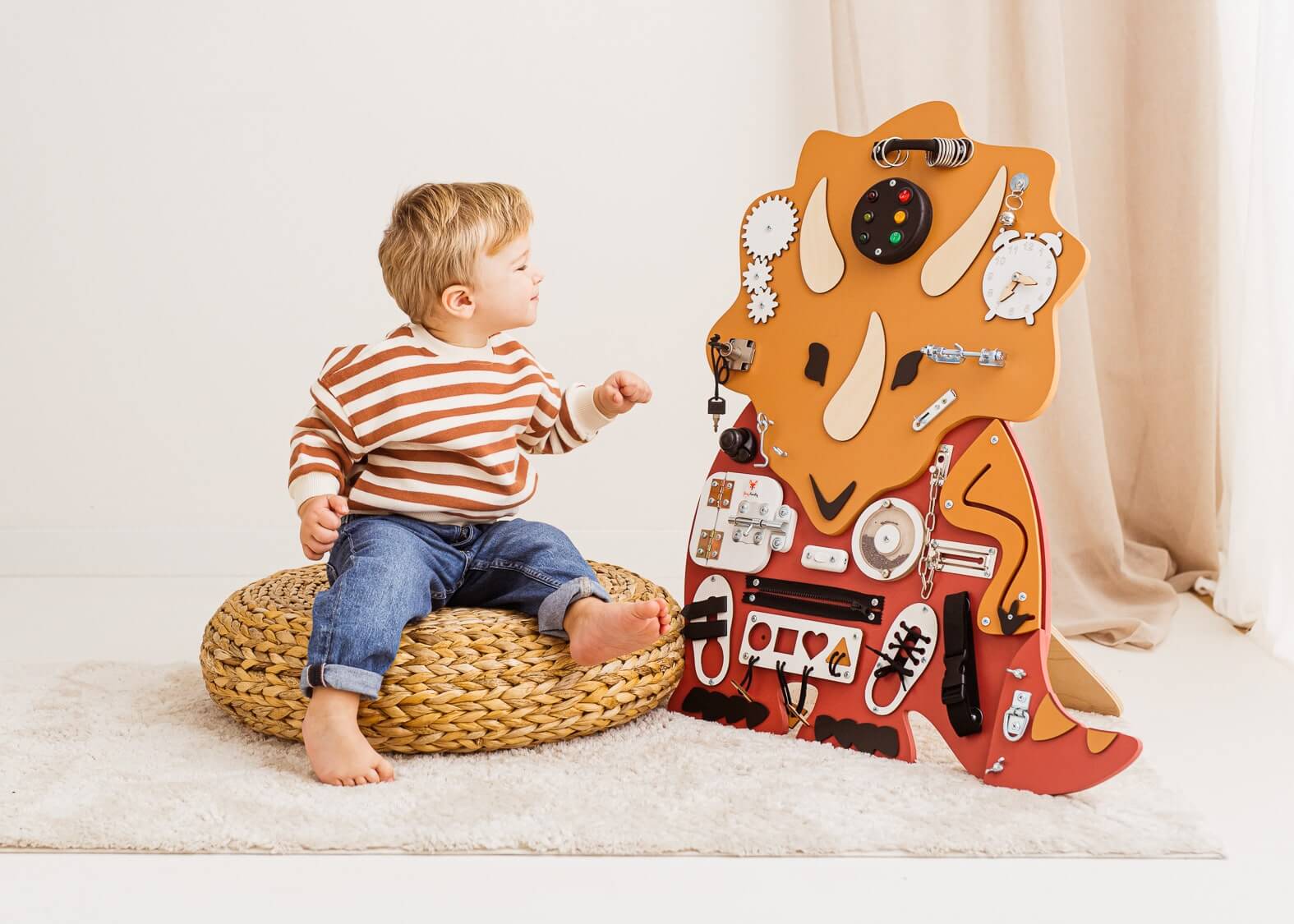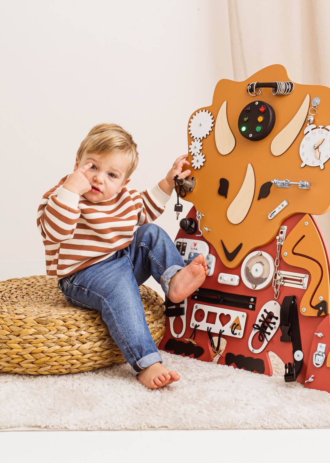 Wie alle Motorikboards bei KleinLeni erfüllt auch Tilda Trizeratops höchste Qualitätsstandards.