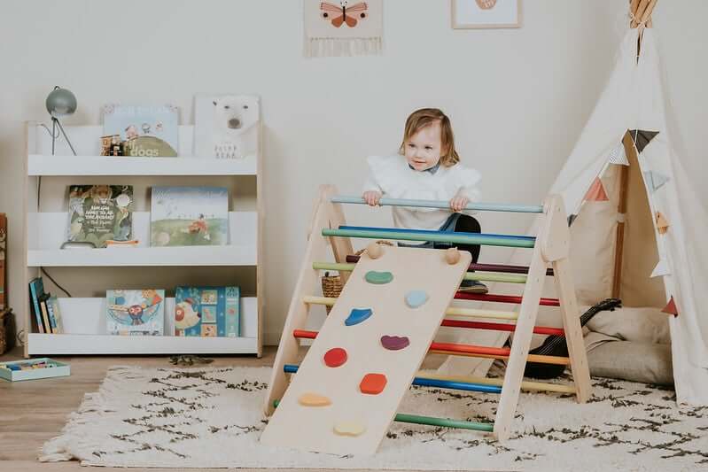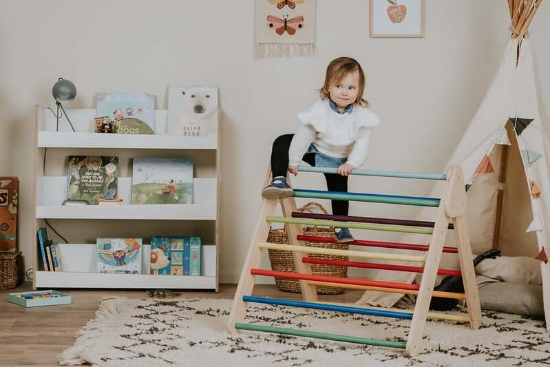 Unser Pikler-Dreieck ist ein einzigartiger Spielplatz direkt in deinem Zuhause für Kinder im Alter von 6 Monaten bis fünf Jahren.