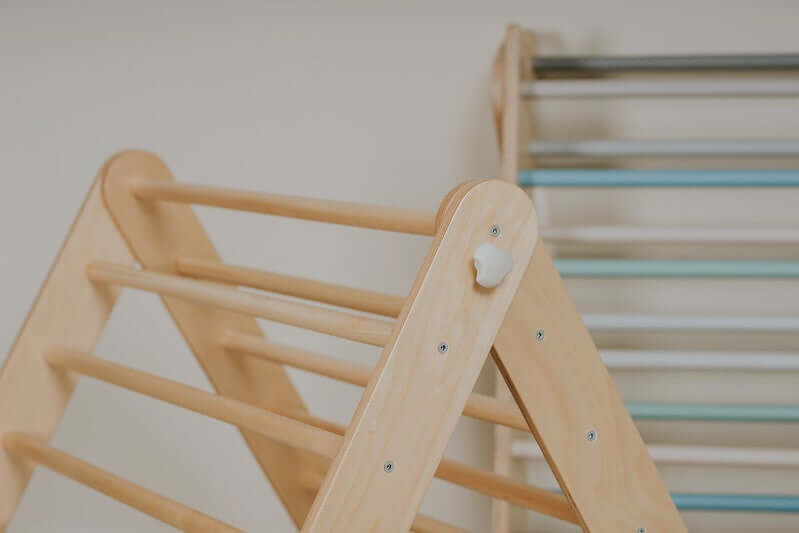 Unsere Kletterdreiecke / Pikler Dreiecke sind ganz nach Pikler & Montessori Gedanken entwickelt und fördern die Grob- und Feinmotorik.