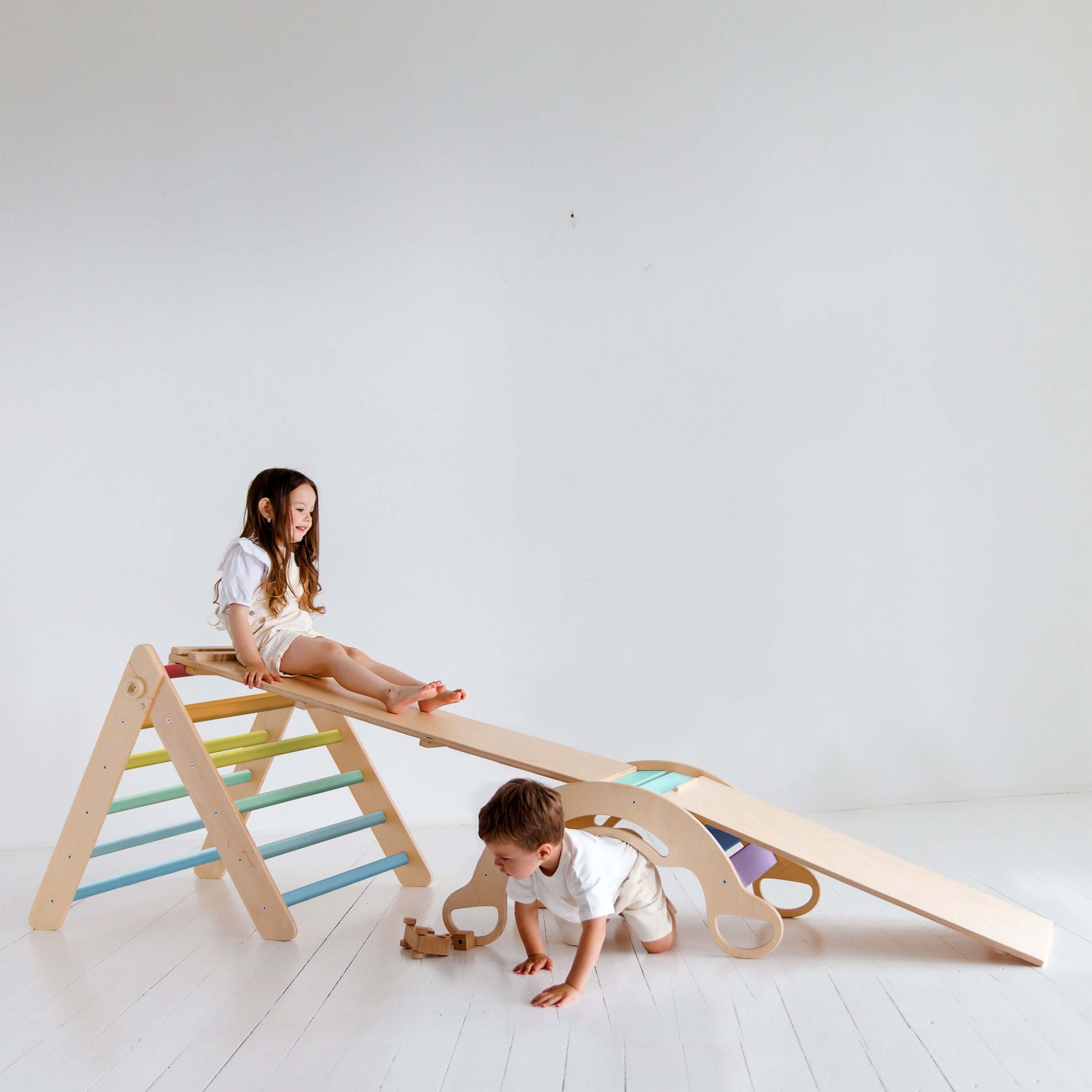 XXL Set Pikler Dreieck, 2x Rutschbrett, Schwingbogen - versch. Farben
